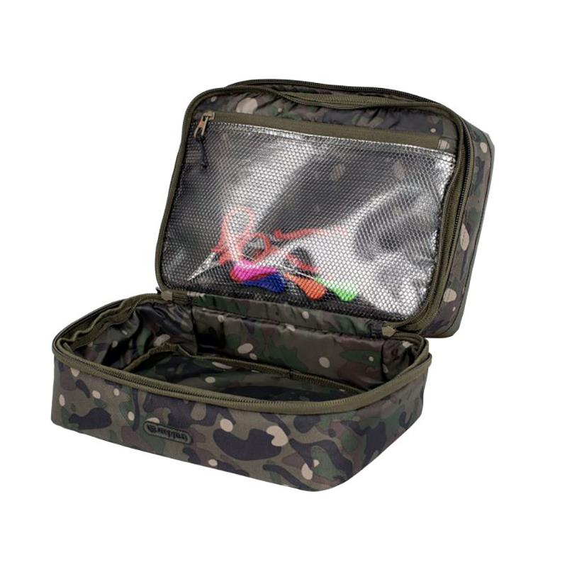 Da das Montagebrett aus eva magnetisch ist, eignet es sich hervorragend, um Ihre Montagen und Ihre Anköderwerkzeuge während der Verwendung zu sichern. Die Innennetzfächer im Hauptfach verwenden ein robustes Netz, wodurch sie ideal zum Verstauen von Montagewerkzeugen wie Anködernadeln sind, ohne dass diese in einem herkömmlichen Netz hängen bleiben. Der mittig mit Reißverschluss versehene Trenner verfügt auf der einen Seite über eine große, mit Reißverschluss verschließbare Netztasche und auf der anderen Seite über sechs große Zubehörtaschen für tt. Die nxc rig-r box kann die meisten derzeit erhältlichen mittelgroßen Tackle-Boxen und Montagebretter aufnehmen, was sie zu einer äußerst vielseitigen Aufbewahrungslösung macht, die vollständig an Ihre Bedürfnisse anpassbar ist. Die Tasche ist stark gepolstert für maximalen Schutz, hat eine widerstandsfähige, wasserdichte Basis und einen Neoprengriff zum Transport in größeren Taschen.