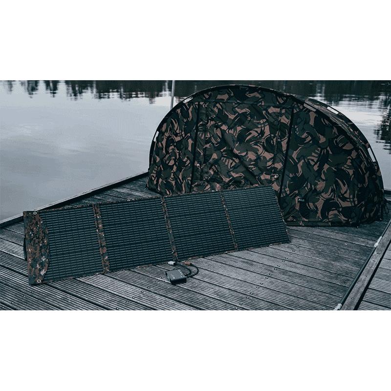 Das faltbare Solarpanel Voltacase mit 200 Watt ist ideal, um deine Batterieboxen aufzuladen, wenn du am Wasser angeln bist.