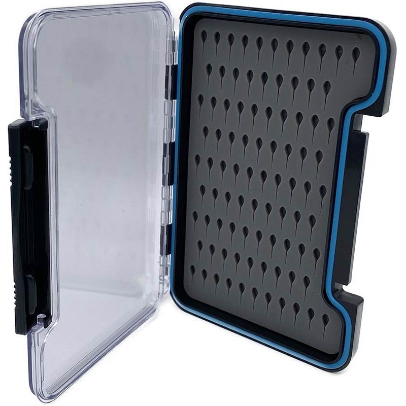 Wasserdichte Box aus hartem ABS, extra dünn, mit einem Silikonboden in "Tropfen"-Form für optimalen Halt der Fliegen. Ideal zur Aufbewahrung von Hackle-Fliegen oder für Haken und Perlen
