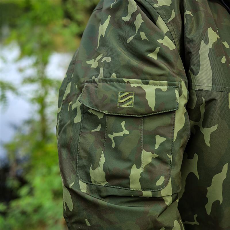 Das perfekte Außenbekleidungsstück in unserem einzigartigen Tarnmuster, entwickelt, um vor Wind und Regen zu schützen und dem Angler ein ultrawarmes Kleidungsstück zu bieten, das am Ufer supercool aussieht. Die Heavy Weight Camo Jacke wurde als praktisches, aber funktionales Kleidungsstück entwickelt, sowohl wasserdicht als auch atmungsaktiv, mit einer Außenhülle aus 100 % nylon, taslon 230T. Vollständig versiegelte Nähte, isoliertes Innenfutter für zusätzliche Wärme und vollständig atmungsaktiv. Zu den weiteren Merkmalen gehören ein hochwertiger YKK-Frontreißverschluss und eine Sturmblende für vollständigen Schutz sowie ein Kordelzug in der Taille. Außerdem gibt es zwei große Fronttaschen mit Zugang von oben und seitlich, eine Seitentasche am Ärmel, eine Innentasche für das Telefon, eine vollständig verstellbare Kapuze, Sturm-Bündchen mit Klettverschluss und ein elegantes gummiertes Abzeichen. .