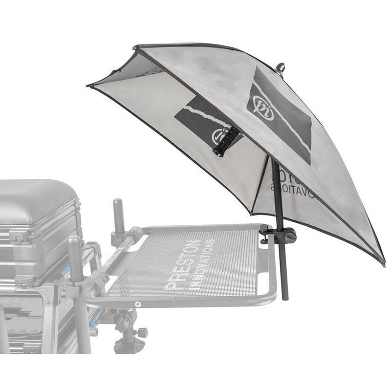 Geliefert mit einer speziell entwickelten Halterung, die an viele vorhandene Preston-Seitentabletts passt, kann der Köder-Brolly genau dort positioniert werden, wo Sie ihn benötigen. Der Köder-Brolly verfügt über einen Neigungsmechanismus, und die Mittelstange kann vollständig eingeschraubt und in einer Position von 45 Grad angebracht werden.