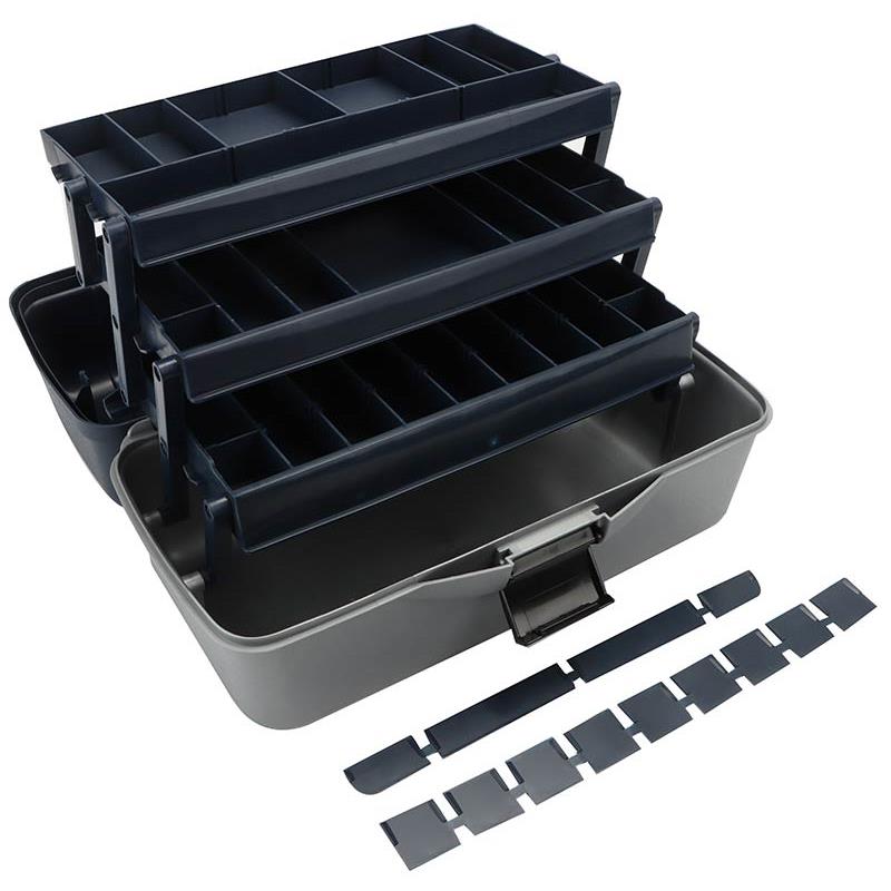Box gefertigt aus einem erstklassigen, hochwertigen Material mit hoher Stoßfestigkeit. Sie verfügt über ein großes unteres Fach und 3 kippbare Einsätze mit 27 Fächern und Trennern, was effektiv ist, um Ihre Ausrüstung stets gut organisiert zu halten. Robustes Verriegelungssystem, bequem beim Transport.