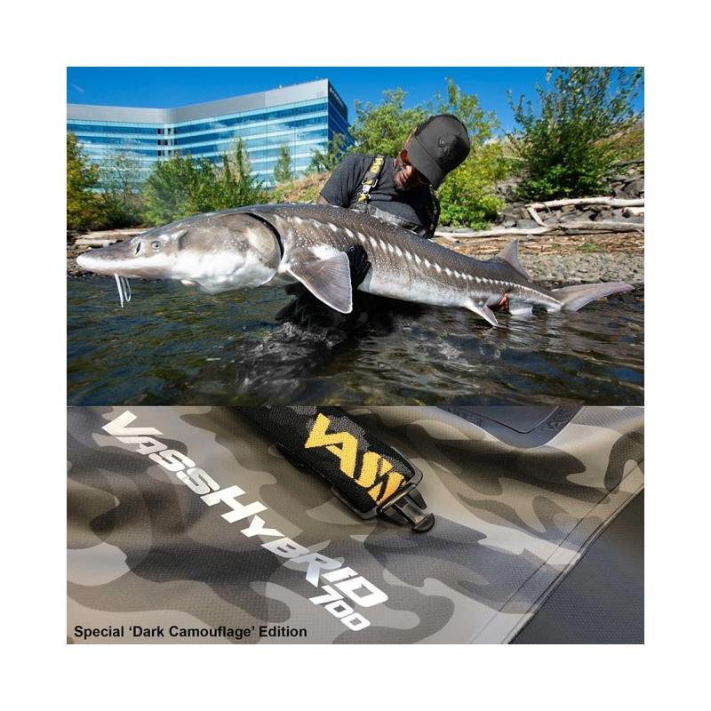Diese Version kombiniert den matt schwarzen Unterteil aus matériau Vass-Tex 700 'VRLR Stealth finish' mit dem leichten Oberteil aus matériau Vass Tex 350 VRLR 'Dark Camouflage', um das Gewicht zu reduzieren und die Flexibilität zu erhöhen. Diese Kombination bietet Anglern das Beste aus beiden Welten ohne Kompromisse !