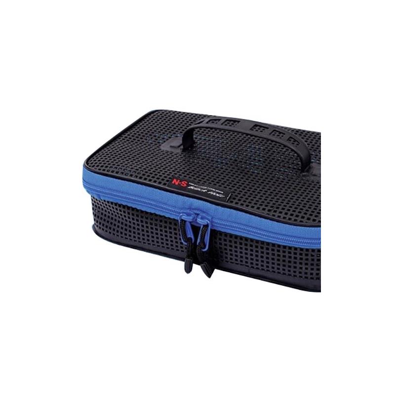 • Featuring a YKK Corporation zipper, it has high durability and withstands heavy lures. • Equipped with a #304 stainless steel frame, reducing twisting and increasing resistance to salt. • The thick 1,2 mm mesh net reduces sagging even when lures are heavy. • A fully meshed bottom, maximizing water drainage. • MATERIAL : EVA • SIZE : 27 X 18 X 7cm