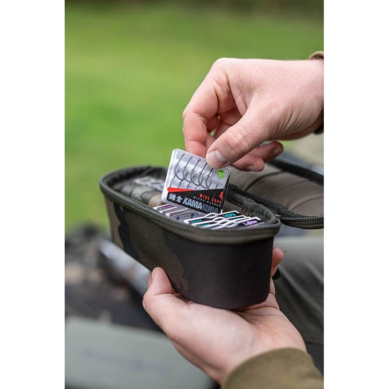 The Tackle Pouch 55 is perfect for filaments on Korda square spools (Bait Floss, Arma-Kord, etc.). For those who carry Kamakura hooks with them, the 55 is the ideal size for Kamakura hook boxes. With its 20 cm length, it is also suitable for longer items such as Kutters, marker floats and other lamps.