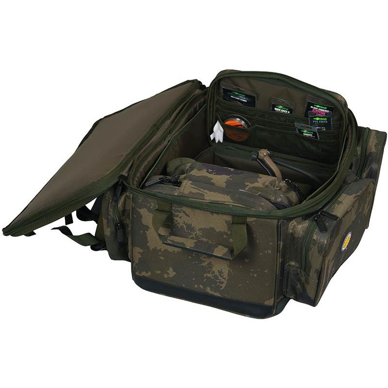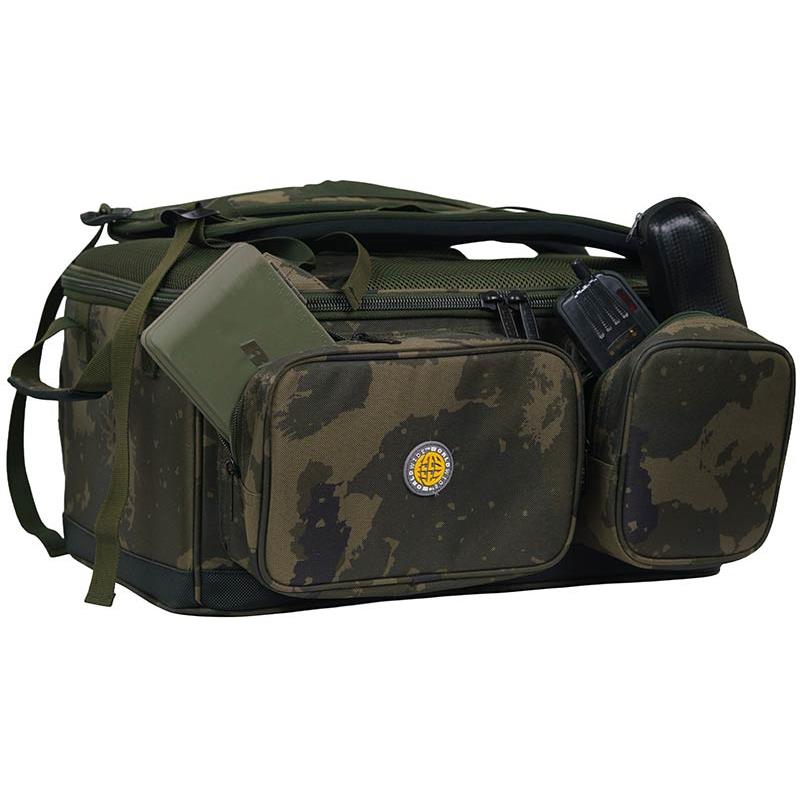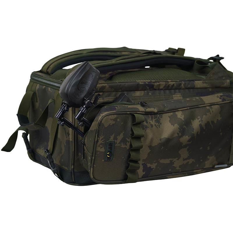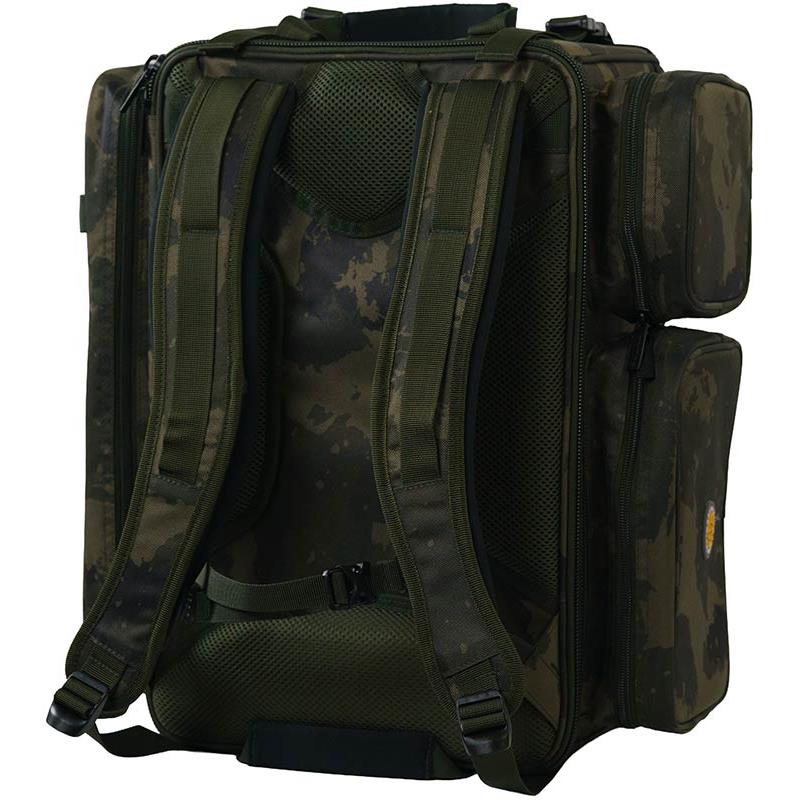 • Made from Worldwide camo 600D fabric with PU coating • Padded rear lumbar support and quilted shoulder straps for optimal comfort • External supports for banksticks (banksticks) • Durable, waterproof PVC base • 1 large main compartment and 3 external pockets • Double cargo straps for additional external storage • Rigid walls providing maximum equipment protection • Main compartment dimensions (cm) : 46 × 28 × 22 • Overall dimensions (cm) : 50 × 42 × 25 • Main compartment capacity : 30 liters