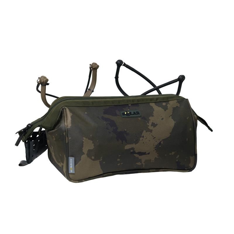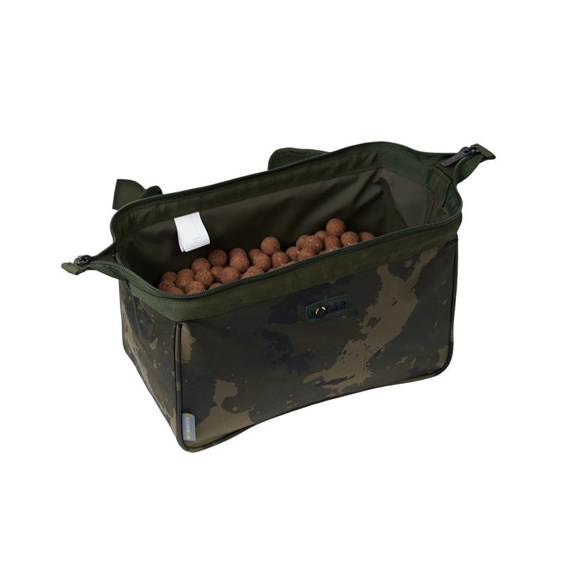 Built from a sturdy material backed with PU Worldwide Camo 600D, it features a welded PVC interior that allows the use of glued or soaked baits without damaging the bag.