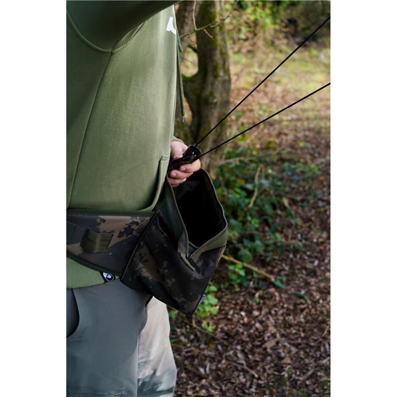 • Welded PVC interior allowing the use of boosted baits without damaging the bag • Wide rigid opening for easy access • Padded waist belt • Two elastic loops for boilie launchers or slings • Capacity : 5 kg+ • Made from Worldwide camo 600D fabric with PU coating