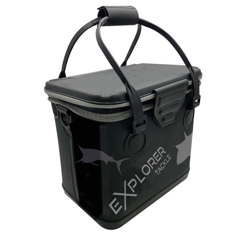 Can also serve as an auxiliary livewell or as a bucket. Double carrying handle with comfortable padded Velcro.