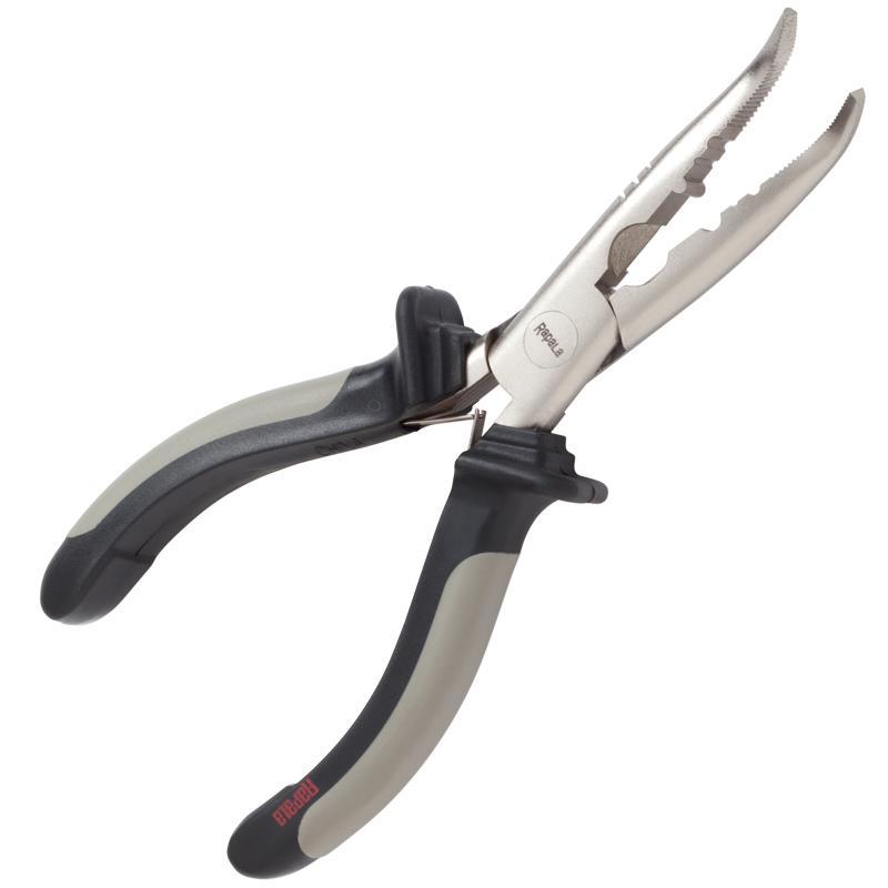Its curved tip allows to take down the hooks easily. It is made of nickeled steel. These cutting pliers include wire-cutters and double spring for an easy opening. Rapala logo on the grip and its handle.