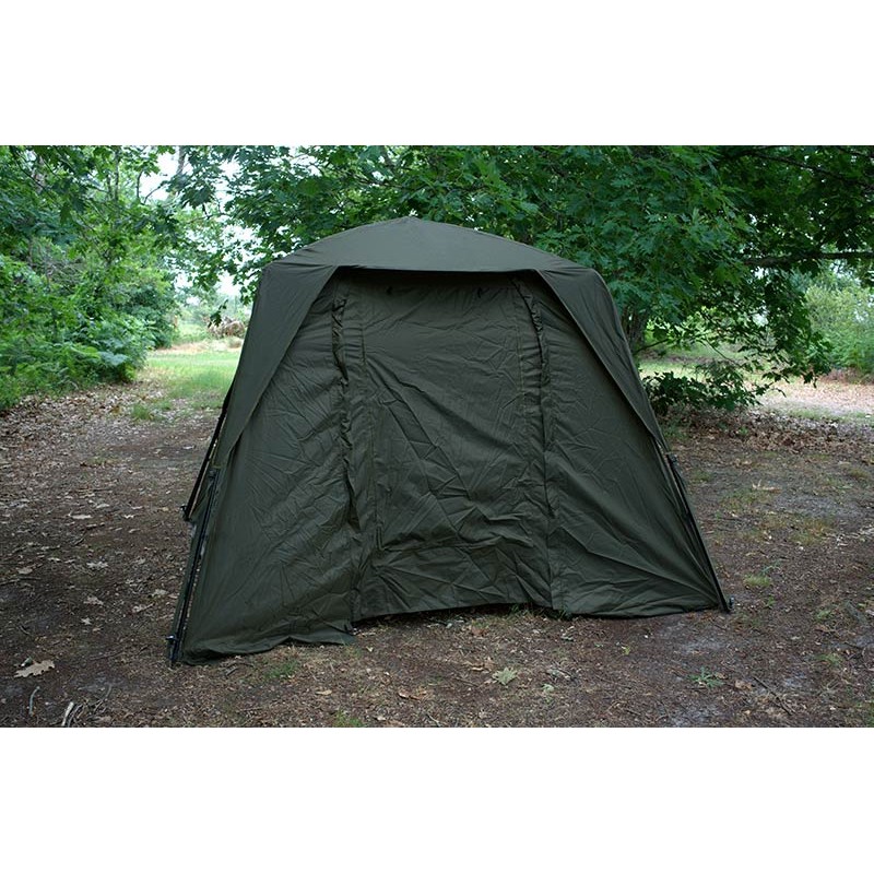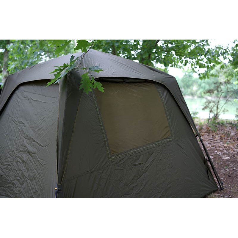 • 2-person bivvy • 210D fabric • Square structure offering an incredible interior space • Aluminium frame • Extremely simple and quick to assemble • Large rear window and 4 small mosquito nets under the roof flysheet promoting air circulation • Supplied with its screw-in pegs • Dimensions : Depth 275cm, Width 275cm height 200cm • Weight 8,5kg • Carry bag included