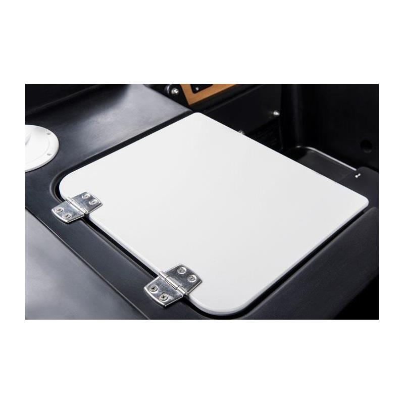 Standard equipment: • 1 Starboard front locker • 2 Starboard rear lockers • Marine plywood rear engine mount • 1 front mooring point • 3 plastic cleats • 2 oarlock supports • 1 rowlock holder • 2 rowlocks • 1 drainage plug • 1 Snap cap D=34mm • 2 2m40 oars • Black Starboard floor • 1 removable rotomolded bench locker • 4 stainless steel handrails