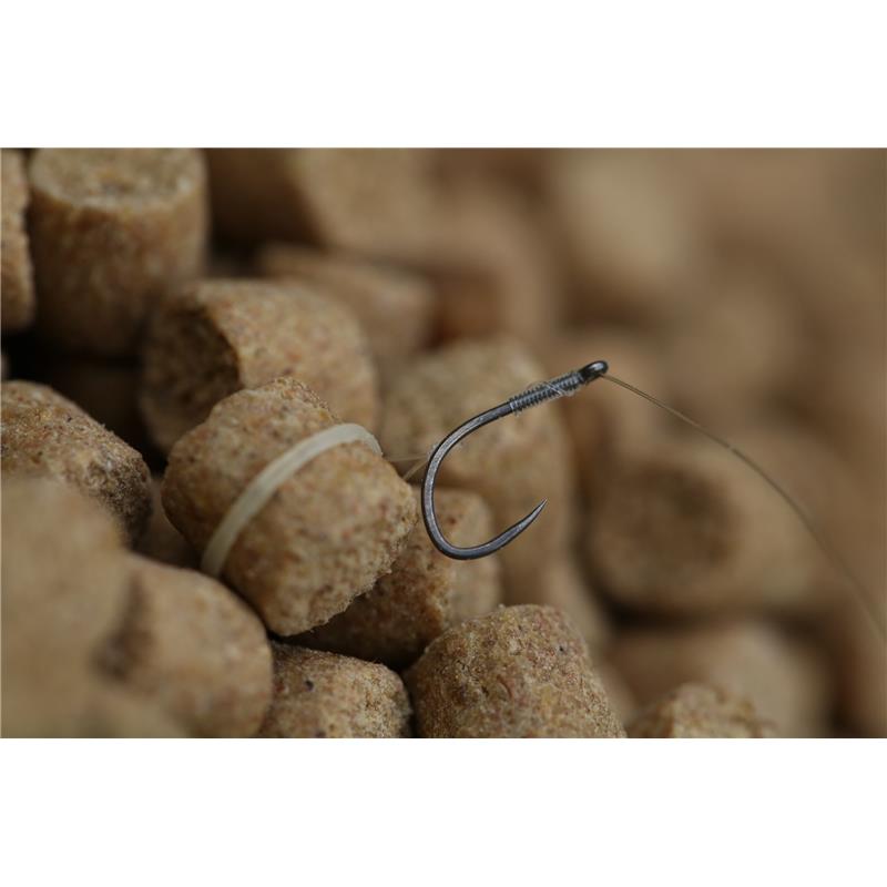 • Very neat eyelet rig with a micro baiting elastic on the hair • PTFE coating that reduces glare in the water and increases the durability of the hook • Mounted on a versatile length of 6”(15cm) • Mounted on an N-Gauge nylon