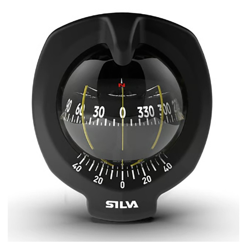ROAD COMPASS SILVA 102 B/H Conical rose 102mm Compass equipped with a heel-angle scale and integrated lighting. • Two alidades at 45°, protective cover supplied • Width 135mm x height 156mm • Color: Black