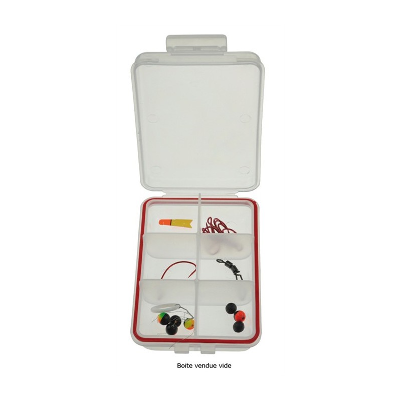 Transparent plastic box with 6 boxes to store lures and small accessories, equipped with a seal.
