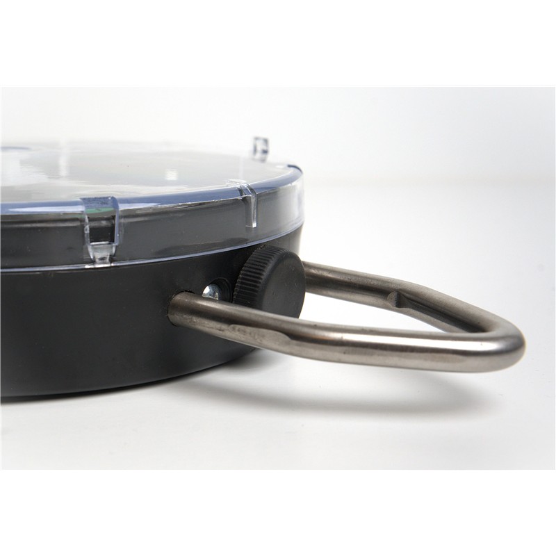 Compact 50 kg rack-and-pinion scale. Robust and very easy to read for reliable, easy weighing. Suspension ring and stainless steel hook allow it to be hung from a tripod or a weighing bar securely. Precise tare adjustment