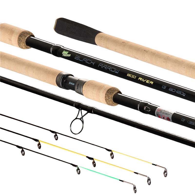 The Black arrow 800 rods enjoyed, nearly ten years ago, enormous success among the most demanding competitors! Bolstered by that success, we were keen to evolve this series of rods. The new ‘SeaGuide’ rings, thinner and lighter, will help to lighten and stiffen the rod. The butt is made of a ‘cork-rubber’ mix on both ends, a flattened EVA foam section at the base, and high-quality cork on the rest of the butt. This rod series is available in 6 models, from 330cm to 420cm; you will find ‘Medium’ actions with the 800 Lake, ‘Medium-Heavy’ actions with the 800 River and also an 800 Barbel version whose power will leave you speechless!