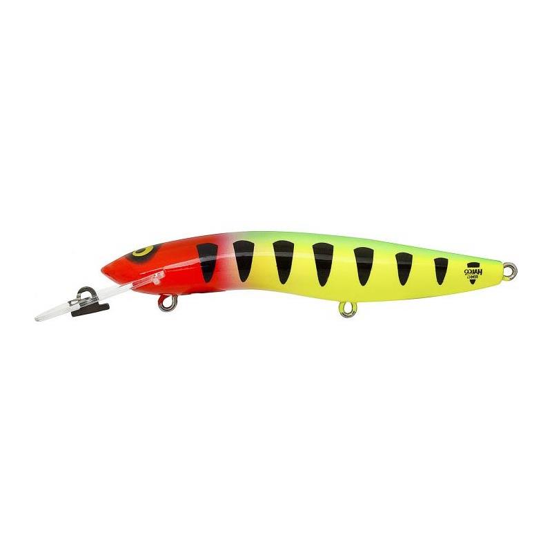 The lure Sorcerer 125mm of Halco is brutish lout. It supports important speed of troll and produces a powerful wobbling, formidable on exotic fish. Its armament assembled on stem stainless of 2mm made of it a formidable weapon to fight the records fish of planet. Sold with 2 interchangeable flaps to change depth of swim, Sorcerer is probably the most polyvalent deep thunderstick of the world! Weight: 20g. Troll speed: 1 to 7 knots. Lure pre-rigged with a triple hook.