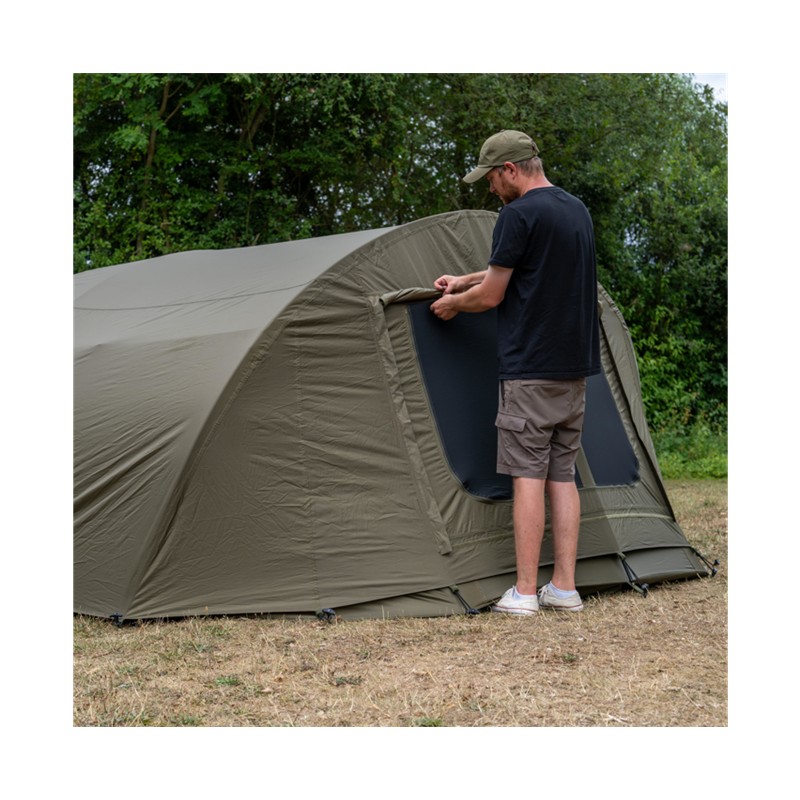 • designed to perfectly complement the revolve ng 2-person bivvy with a double-skin layer that increases protection and improves insulation — warmer in winter, cooler in summer. • reduces condensation build-up and adds extra front storage space for boots, guest chairs and spare gear. • waterproof khaki fabric, 10 000 mm resistance • large rear mesh opening with zip access to the bivvy for optimal airflow • front zip panel for an open-front setup and a two-flap, mailbox-style door for year-round use • two rod straps located at the front of the shelter • main outer fabric : 100 % polyester • dimensions (cm): 155 x 300 x 330 (carry bag : 75 x 22 x 22) • weight: 4kg