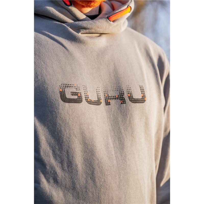 As the name suggests, on the back of the sweatshirt you'll find a circular logo with black and orange Guru logos, creating a unique, eye-catching design. The same effect is used on the front with « Guru » placed at chest level.