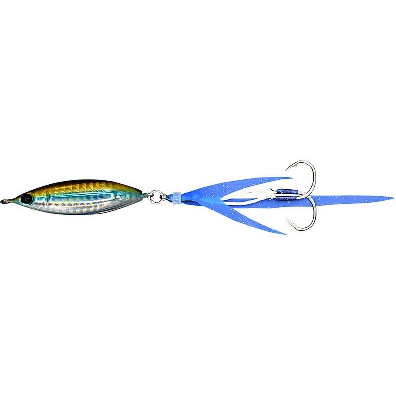 Composed of a small slow jig and a long double assist fitted with a fish-tail type silicone skirt, this hybrid jig combines the attractive features of the inchiku and the madai, which will trigger reflex strikes from many predators, including some sparids. Primarily intended for cast-and-retrieve, it will also be highly effective on drifts.
