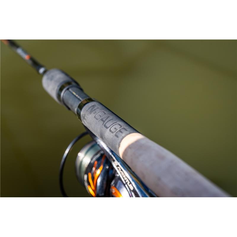 the finishing touches included on the n-gauge pro rods are a 'dps down locking' reel seat with an EVA power grip. a very high-quality cork handle with an engraved guru EVA grip provides maximum support during casts. and a brand new n-gauge pro graphic to give the rods a perfect finish.