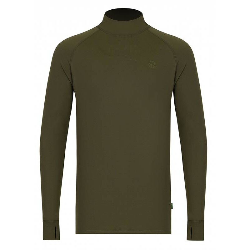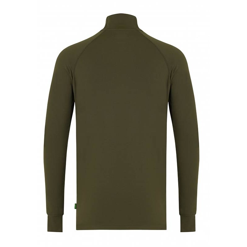 The brushed jersey construction ensures excellent heat retention while remaining remarkably breathable. Plus, its fitted cut eliminates bulk while maximizing thermal efficiency. The high collar creates an effective barrier against cold drafts, and the fabric at the lower back does not ride up during casts or baiting.