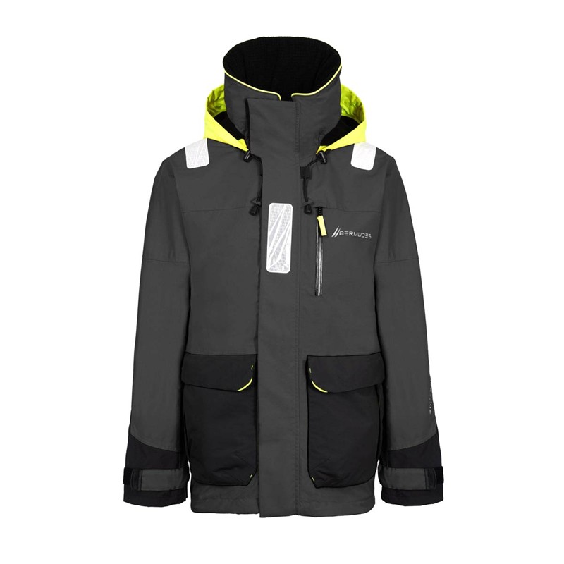 • sealed seams guarantee a high level of waterproofness to the product. • the high collar lined with fleece combined with the attached hood offer optimal protection against the elements. • the cuffs are fitted with polyurethane inner cuffs for enhanced protection. • the garment features 6 pockets including 2 hand-warmer pockets (2 patch pockets and 4 zip pockets). • for greater visibility the garment is equipped with retro-reflective bands. • reinforcements are applied to the elbows and lower back for maximum abrasion resistance. • the bermudes logo is applied to the chest.