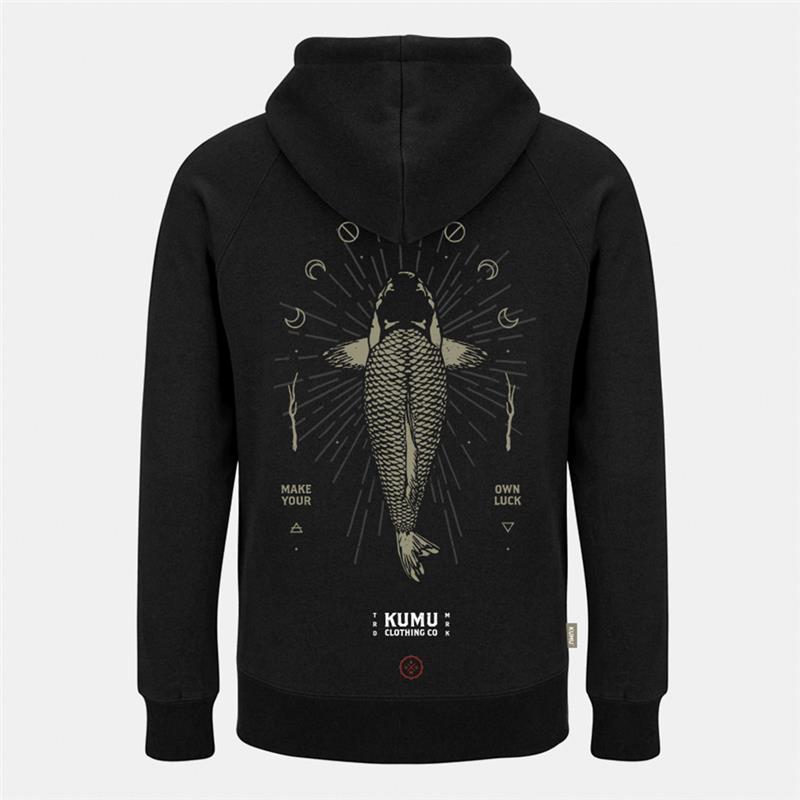 ‘Make Your Own Luck’. Print on the chest and print on the back of a large common carp on our 320gsm super soft and super warm fabric with brass details.