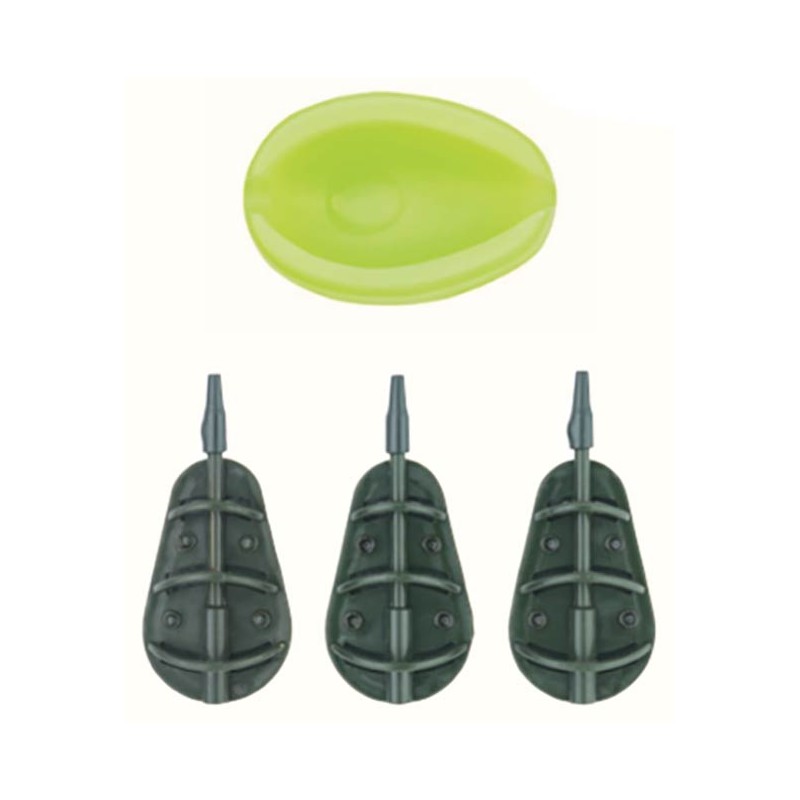 • Set of 3 Method Feeders of different weights • «In-line» for a perfect presentation of the bait and for an optimal hook set • Lead free (without lead) for the protection of the environment • Supplied with a Method mold featuring a non-stick finish for perfect demolding