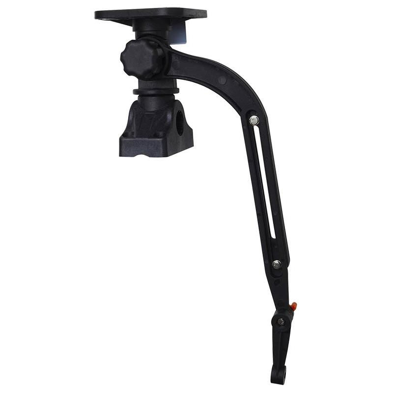 telescopic fishfinder mount pack fully adjustable and specially designed to equip a kayak or a float tube. it is supplied with a square mounting plate for small fishfinders with a top plate adaptable to a large number of brackets. 360-degree rotation of the plate. it mounts on the dam rod holder mount reference 71005 supplied as standard with the mount which can be screwed directly onto a flat, rigid surface. a glue-on base mount reference 71004 optional will be necessary for installation on a float tube.