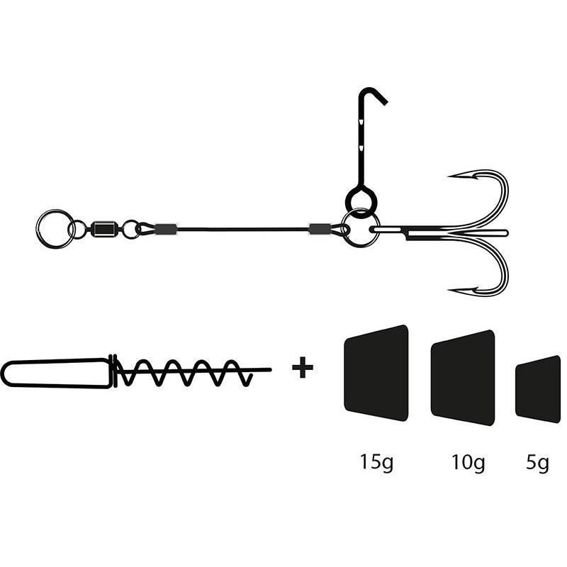 • The pack includes : 3 sinkers : 5, 10 and 15g (2 Black Mate, 1 Firetiger), one extra screw size M. Ideal for lures from 12 to 18cm.