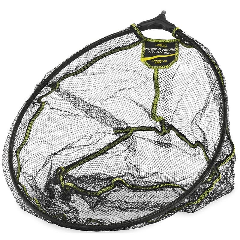Lightweight and sturdy landing net head made with a mesh of very strong and completely waterproof nylon fabric. This type of net can also be used with barbed hooks precisely because it is woven from braided nylon thread. If a hook becomes stuck in the net, it will be possible to remove it easily because the fabric's mesh opens easily.