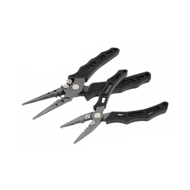 these pliers allow opening a wide range of split rings. usable on split rings of different sizes. practical for bending or straightening hooks, or unhooking a fish, and you can crimp a sleeve quickly and easily using the compression unit. the line cutter cuts fluorocarbon or pe line (braided line), etc., quickly and easily while fishing. its easy-to-grip handle provides an optimal hold. the materials used are rust-resistant. you can add a lanyard through the cord hole provided for this purpose.