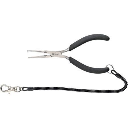 Stainless steel, 160 mm, straight jaws. For split rings size #3-4 (indicative). Wire cutter and barb crimper.