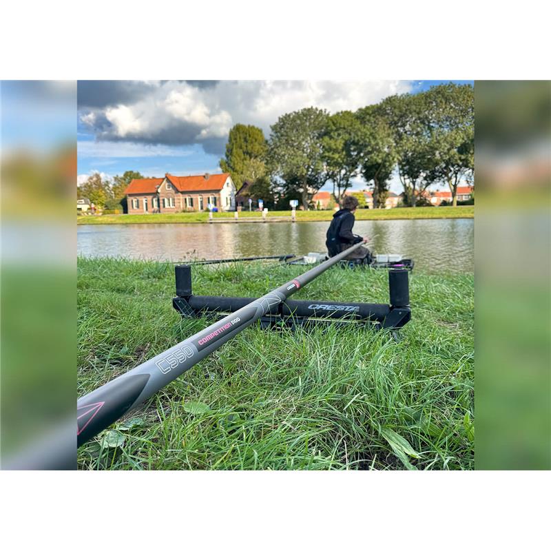 The Centurion Competition Pro C550 is an elegant and powerful pole designed for serious anglers who demand reliability and performance on canals, rivers or lakes. Built with precision and engineered to deliver consistent results, this pole prioritizes function over frills, offering a fast action and control in all fishing conditions. Whether you're targeting bream, roach or rudd, the C550's quick response ensures you won't miss a bite, giving you full control even at its maximum length or in fast-flowing waters. Despite its power, it remains perfectly balanced and comfortable in the hand. It performs exceptionally well in windy conditions, choppy waters or with heavier rigs. It's a pole designed for experienced anglers who know what they expect from their gear. Key features include a PTFE top sleeve in section 1 (Ø 2,85 mm) for smooth elastic movement and reduced friction, as well as smoothly finished sections that allow effortless assembly and disassembly. Available in 11,5 and 13,0 metre versions, the C550 is suitable for a wide range of natural water fishing scenarios. For those who need more power, an optional power kit with a reinforced extraction slot area is ideal for fighting strong fish or fishing in fast currents. Each pack includes the pole (in the chosen length), a mono extension, top kits, a cupping kit and a durable Blackthorne pole holdall for safe and organized transport. Designed for those who spend countless hours on the bank, whether on a calm canal or braving the wind on open water, the Centurion Competition Pro C550 is a reliable and high-performing tool. Its sleek construction, well-thought-out features and accessible price make it a sensible choice for passionate anglers who won't compromise on quality.