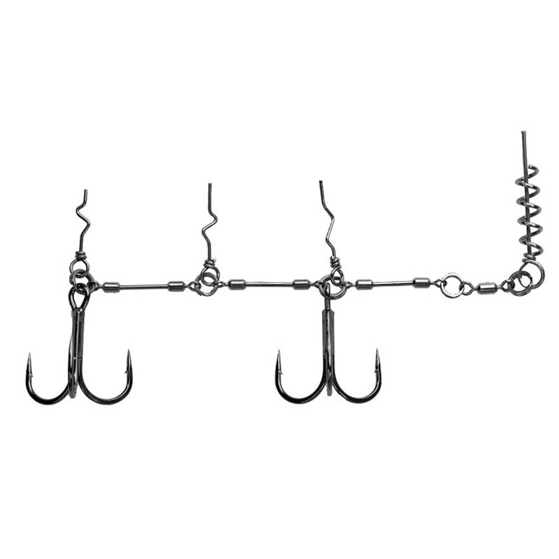 The BKK Chain-21 is a stinger rig specially designed for pike fishing with large soft lures. Its elongated swivels distribute torsional forces and provide great freedom of movement, thus reducing the risk of the fish coming off. A front screw and Z-shaped barbs secure the rig firmly to the lure, ensuring a consistent presentation cast after cast.