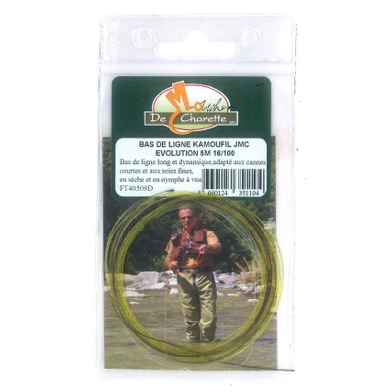 • Knotted leader made of nylon JMC Kamoufil • Very responsive for fishing all types of rivers with dry flies and small nymphs • assembled in France.