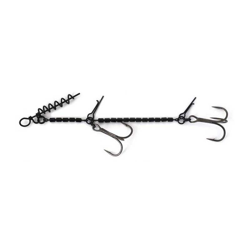 the ulti shallow rig long is a rig made of barrel swivels joined together to limit the risk of the fish coming off by allowing it to rotate on itself without the fish bracing against the lure during the fight. ideal for soft lures of 15 to 20 cm, it is equipped with two treble hooks decoy yf-33f 1.