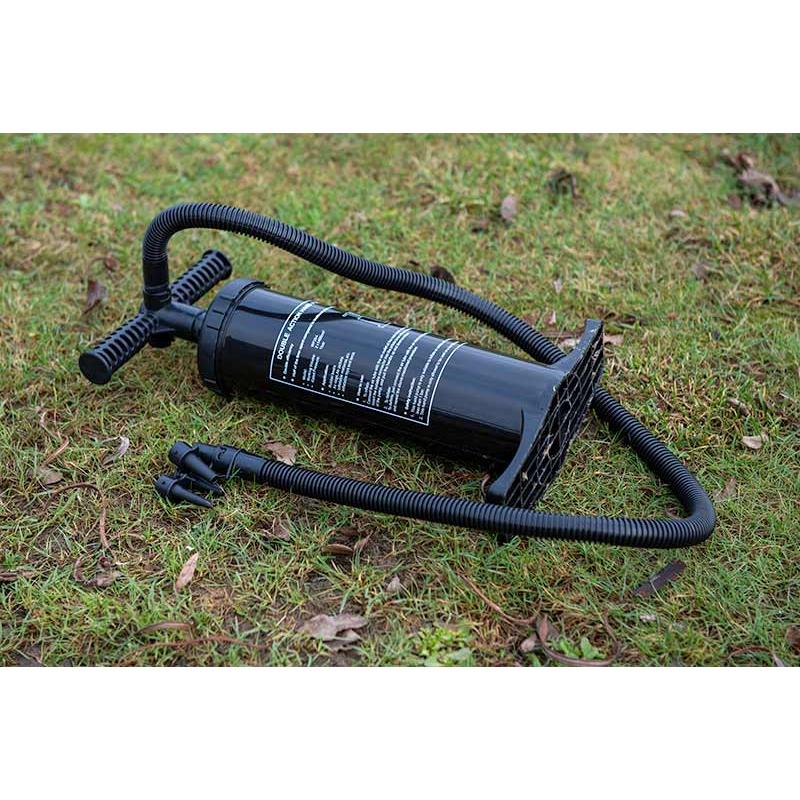 a social shelter with a fully inflatable structure, designed to withstand far harsher conditions than traditional structures. the rapid-fit inflatable tube system allows it to be inflated and anchored easily. made from durable fox khaki polyester it can withstand a hydrostatic head of 8 000 mm. this shelter offers optimal protection from the sun and heat thanks to its "black out" lining on the roof panel. it is versatile with fully removable door and side panels, multiple window options, and a rear entrance that can be used to extend a bivvy/ umbrella. supplied with a dual hub pump and clever storm cord systems. this shelter is designed to withstand all weather conditions.
