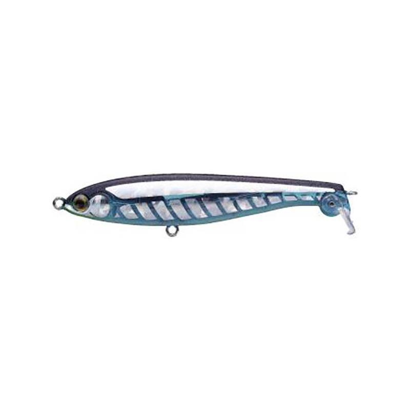 The FLA-PEN WING S85 is a sinking lure featuring a retractable "flap" on its tail that provides an attractive rolling swimming action and stabilises it when casting in adverse weather conditions. During casting, the "flap" folds down to reduce air resistance and ensure a stable and precise trajectory aimed at reaching greater distances. Once in the water, it opens by relying on the water to stabilise the lure in waves without changing its trajectory and generating a pronounced rolling swimming action that results in strong vibrations.