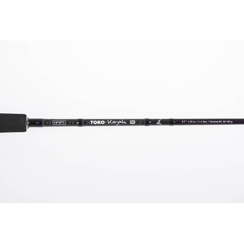 toro kayak fk 61s : long and powerful rod for kayak anglers who want to fish light. it allows vertical fishing with weighted soft plastics and large jigs, to troll or to attract large dentex and porgies with live baits. mounted with fuji k guides. reel seat vss+tvsk. canvas sleeve.