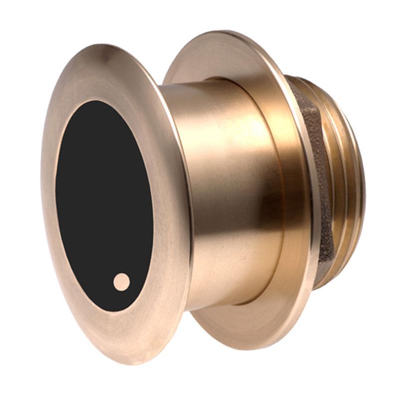 The SB50200TR-7 is a 1 kW dual-function transducer: depth and temperature, with fast response. The sensor is ideal for fast boats or sportfishing boats that cannot install an external fairing because of drag. This low-profile bronze housing protrudes less than 6,35 mm (0,25") outside the hull, which translates into excellent performance at speeds up to 30 knots (34 MPH).