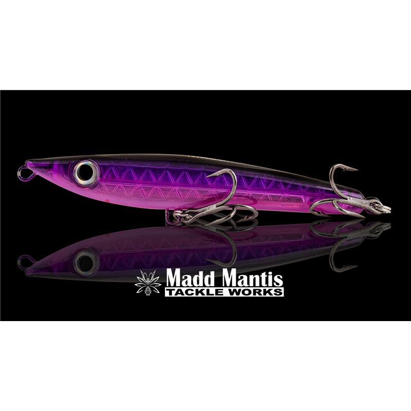 The Madd Mantis Quake is a sinking stickbait. It swims with a steady retrieve or with jerks interspersed with pauses if necessary. During the pauses, it sinks horizontally while oscillating, hence the lure's name. Equipped with through-wire construction, these lures are made for fishing the largest predators.