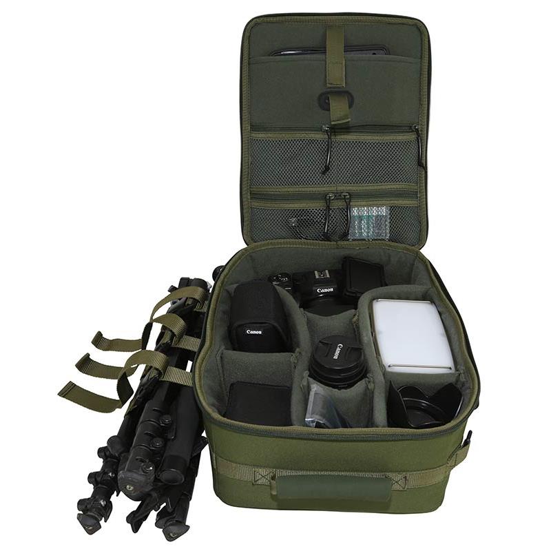 protect your expensive camera and accessories with this purpose-built bag. the main compartment offers a large storage space for a camera body and lenses. thanks to the padded dividers you can arrange and store your lenses, flashes and other accessories as you wish. the top has a spacious pocket and zippered compartments for your spare memory cards, batteries and connection cables. three adjustable and removable straps allow you to attach a tripod, making this storage bag a complete accessory for photography enthusiasts.