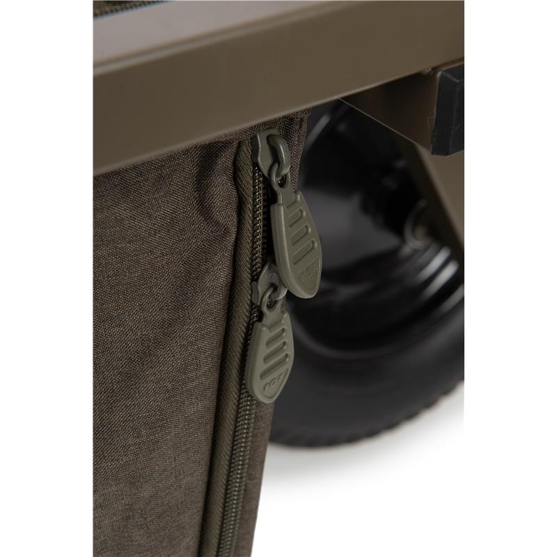 • Heavy-duty, high-strength steel frame • Strap attachment rings to secure elastic straps or trolley straps • Adjustable load length and width, ideal for short or long sessions • Pneumatic wheel with wheel bearings • Height-adjustable and easily removable handles • Sculpted ergonomic handles • Wide mud-resistant feet with cleats for increased stability and traction • Under-cart storage bag with side-access zippers and zippered rear storage pocket • The wheel is easy to remove and the support legs fold for very compact storage • Easily fits most cars • Load length – 94 cm • Load width – 66 cm to 91 cm • Weight 17,45 kg • Packed dimensions: 101,5 cm x 73 cm x 19 cm • Packed weight 21kg