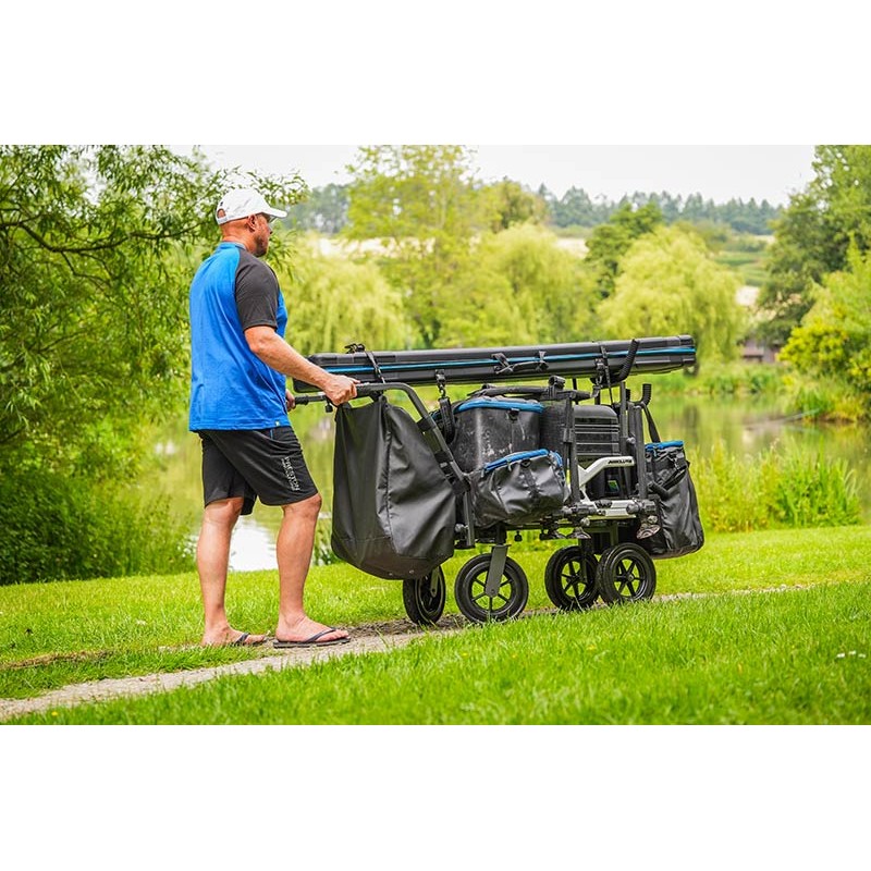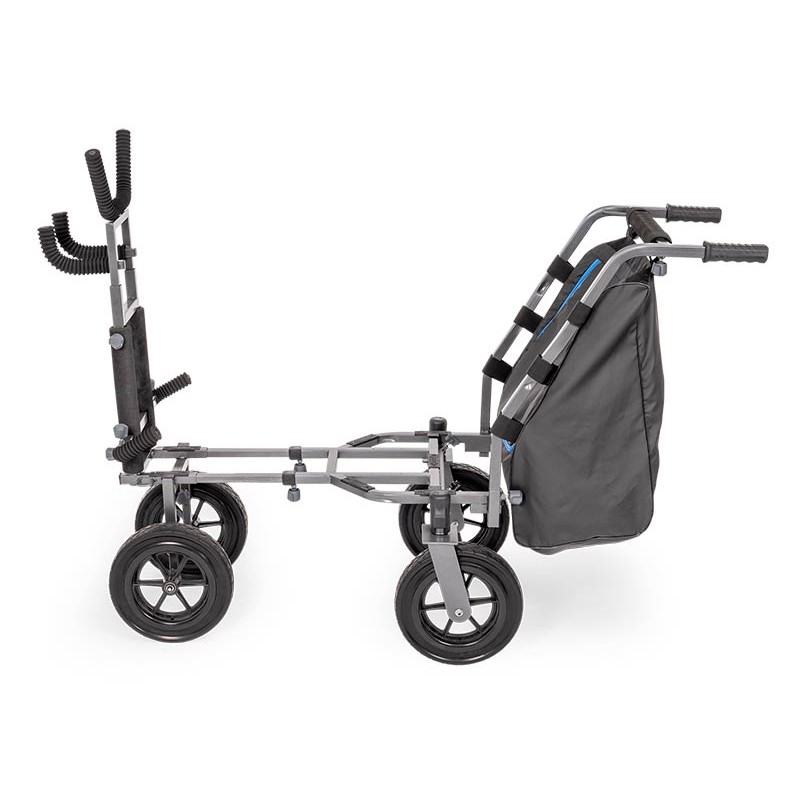 after making a strong impact on the market with our original trolleys, we knew the next generation had to be more than just an update - it had to be cutting-edge. designed from a to z in an innovative way, the new four-wheel trolley sets a bold new standard for equipment transport.it is now larger and more maneuverable than ever. this improved model also folds more compactly than its predecessor. thanks to its rear axles that swivel 360 degrees and its four rugged all-terrain wheels, it rolls over any terrain with ease and precision. • 360° rear steering: independent rear axles provide improved maneuverability and a tight turning radius. • compact storage: an extendable mid-section allows the trolley to fold up more compactly than its predecessor. • weather-resistant storage: the main compartment features a zippered, water-resistant lid to protect your gear.