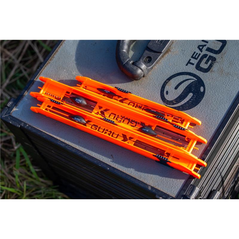 There is a flat area where you can place a sticker or write the components of the rig. Stickers for this are included and fit perfectly. Guru's bright, smart orange colour also makes them easy to spot if they fall.