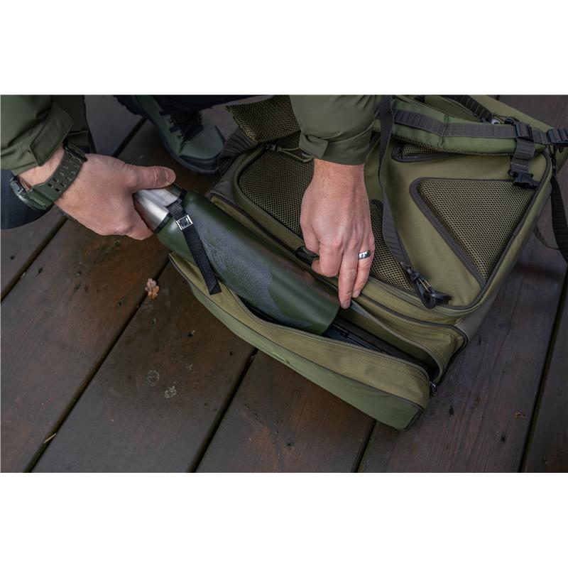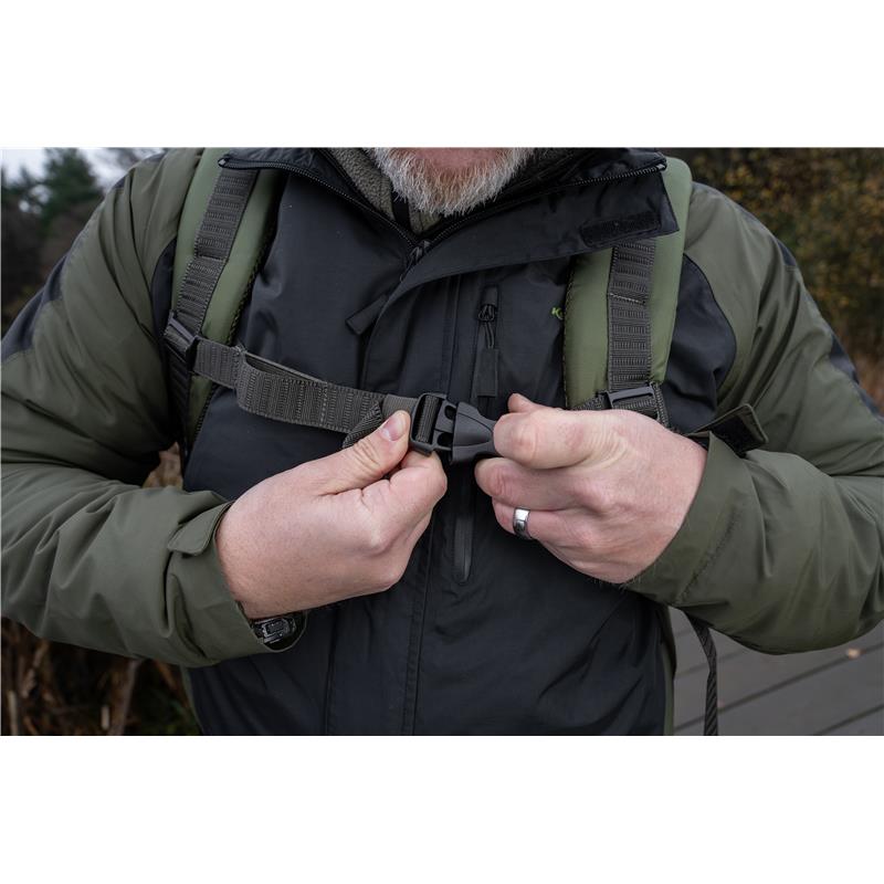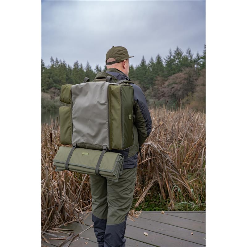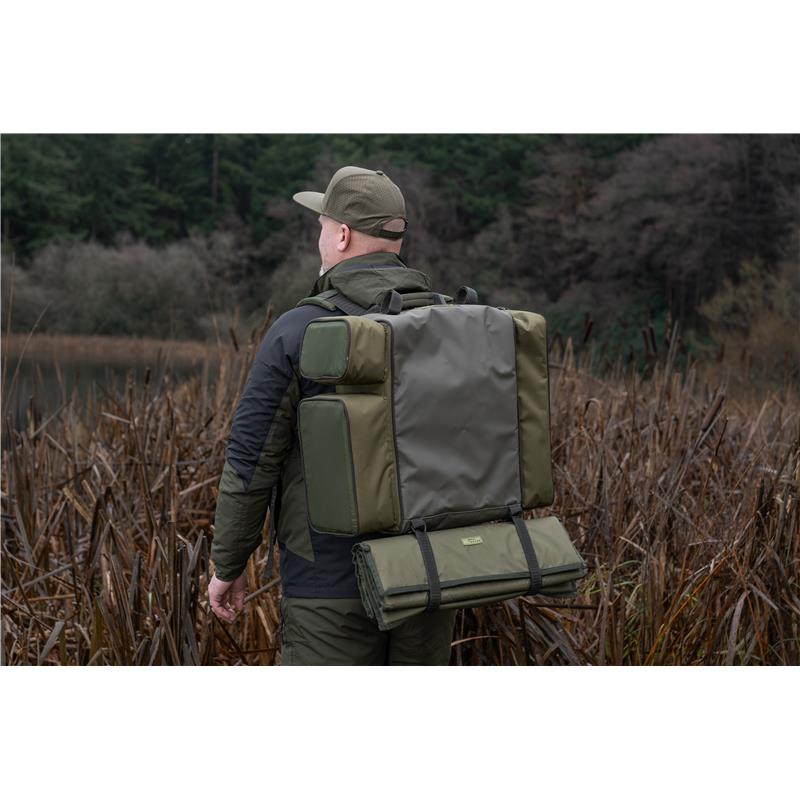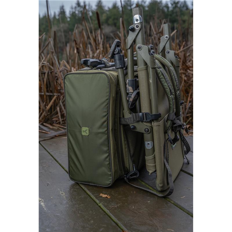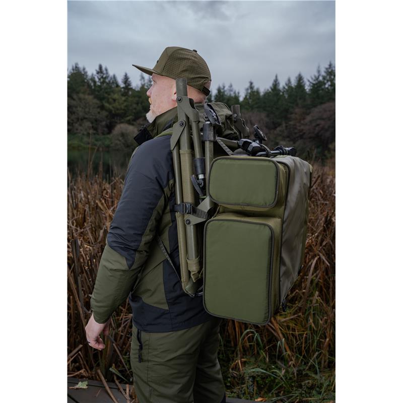 ruckbag 35l - this compact version of our iconic ruckbag offers an ideal capacity in a comfortable, practical format. our famous chair carrier hook system remains, but it is now adjustable to fit multiple chair sizes. carry your chair and your bag at the same time with ease. the side pockets are positioned strategically for optimal use, the larger main compartment ompo lots of room for your tackle blox and other essential items. the heavily padded shoulder straps are adjustable and feature a chest strap for added security.
