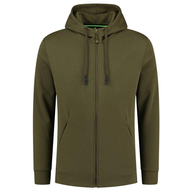 This durable zip-up hooded sweatshirt is ideal for the coldest months as it is made from a double-knit fabric designed to keep heat in and cold and wind out. It is made from a 75% cotton and 25% polyester blend which makes it very comfortable to wear while remaining stylish, with a Korda logo with glasses on the chest. Ribbed cuffs keep the sleeves in place around your wrists and help prevent drafts, and the hood is kept in place on your head thanks to drawcords. A zipped pocket on the front is convenient for storing a few small items. Available in olive and in sizes S to XXXL.